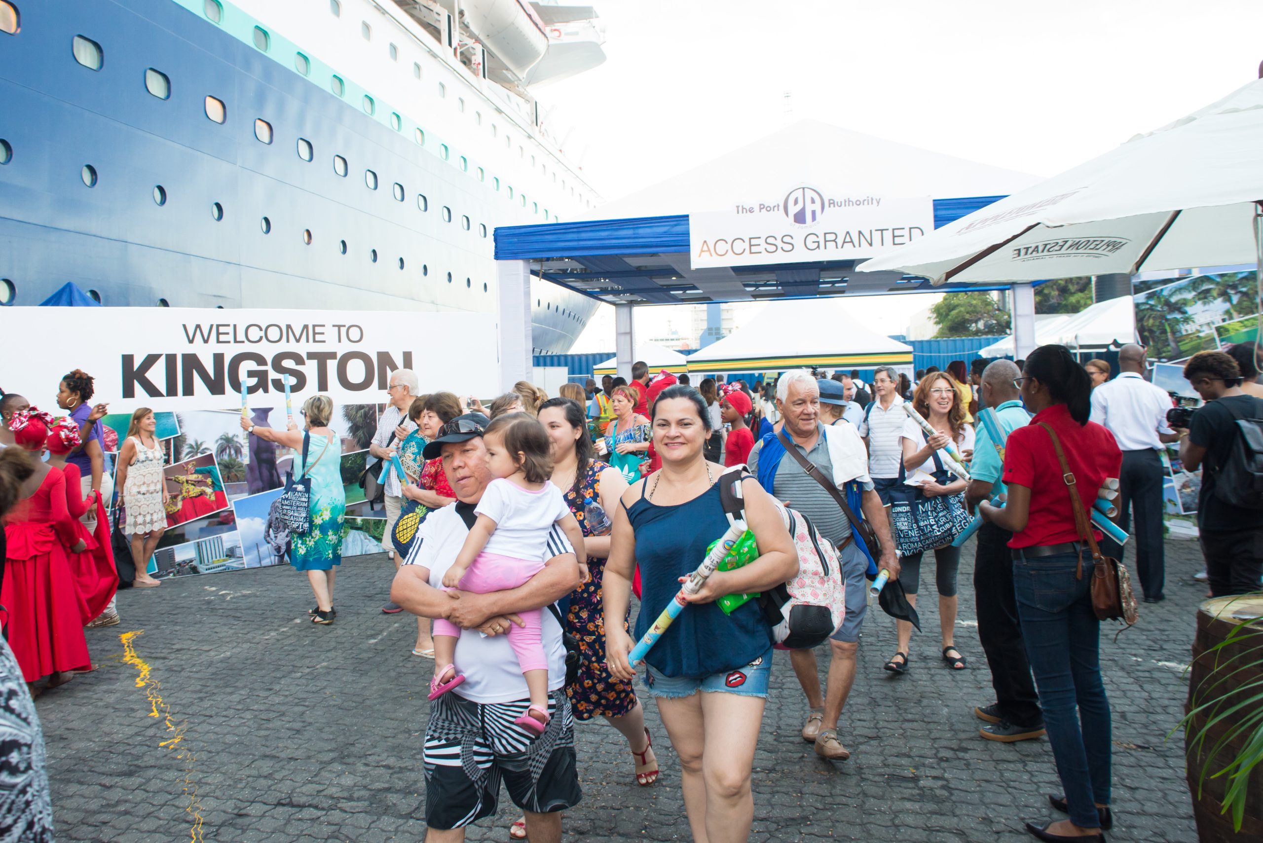 Passengers disembarking from the, 2700 passenger capacity vessel were only aware that they were on a working cargo facility because of the stacks of containers in the distant. Berth 2 was beautifully converted into a welcoming facility to prepare the eager passengers for what awaited them on their voyage of discovery.