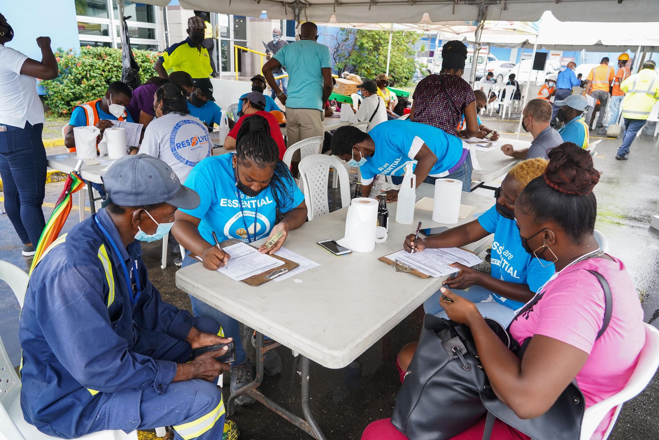Nearly 600 port employees and others came out to get vaccinated at the port community vaccination Blitz held over two days at Kingston Wharves.