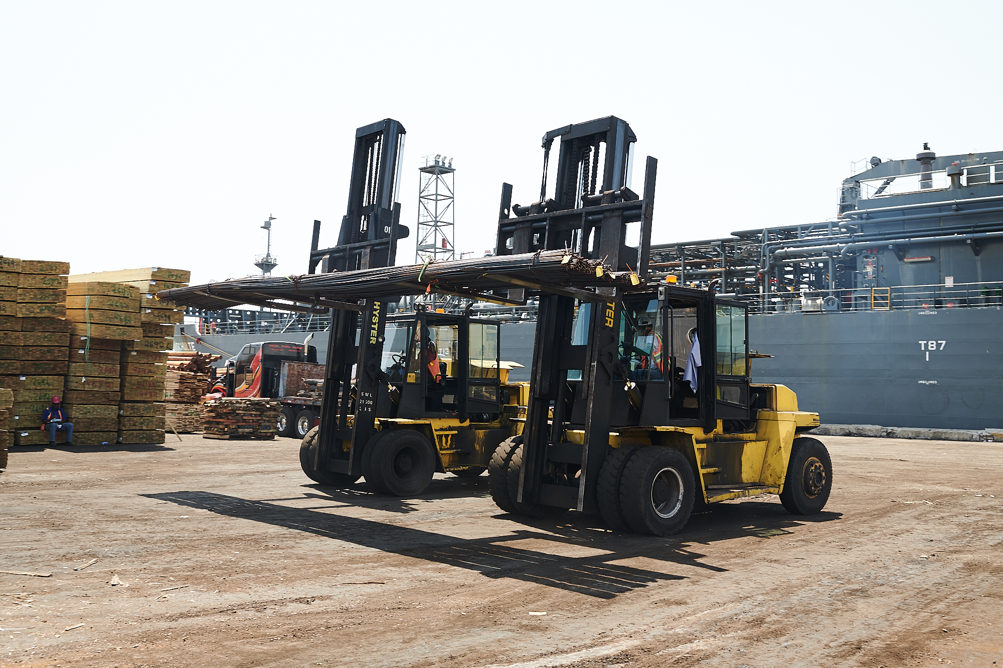 Kingston Wharves handles a wide range of break‑bulk and project cargo including lumber, steel, auto parts, and construction materials.